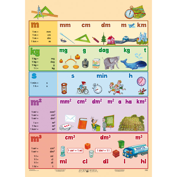 Náučná tabuľa zameraná na základné jednotky a ich prevod. Zvolené ilustrácie uľahčujú žiakom zapamätanie si jednotlivých základných jednotiek a pomáhajú im čo najpresnejšie odhadovať dĺžku, vzdialenosť, hmotnosť, čas, obsah a objem.
