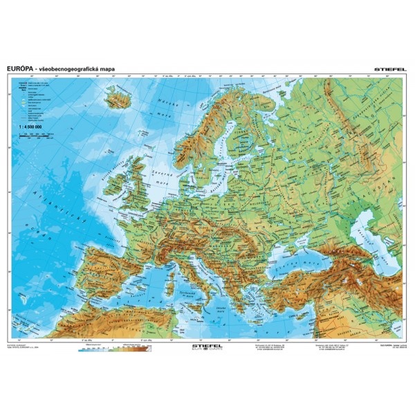 Obojstranná mapa Európy – všeobecnogeografická a politická – patrí do základnej výbavy hodín geografie na základných a stredných školách.