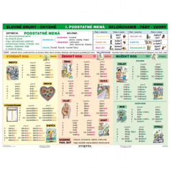 Prehľadne spracovaná náučná tabuľa pomáha učiteľovi pri výklade a žiakom pri práci s gramatickými kategóriami podstatných mien.