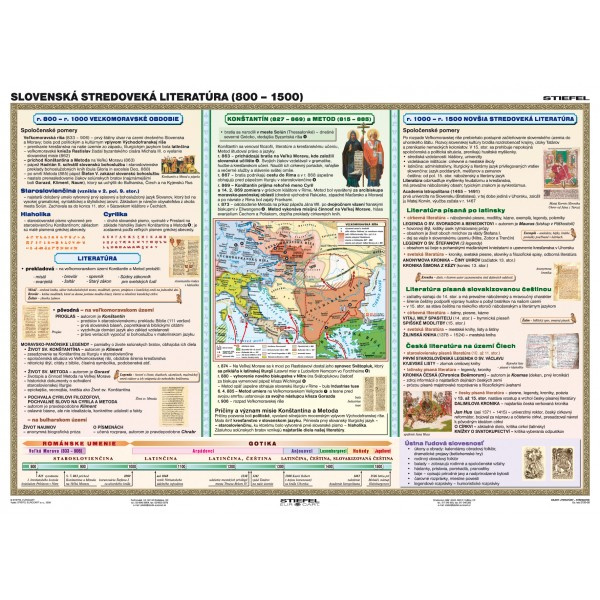 Prehľad slovenskej a európskej stredovekej literatúry je doplnený o vhodný obrazový materiál, časovú priamku a historické udalosti, ktoré pomáhajú ľahšie pochopiť literárne a historické súvislosti.