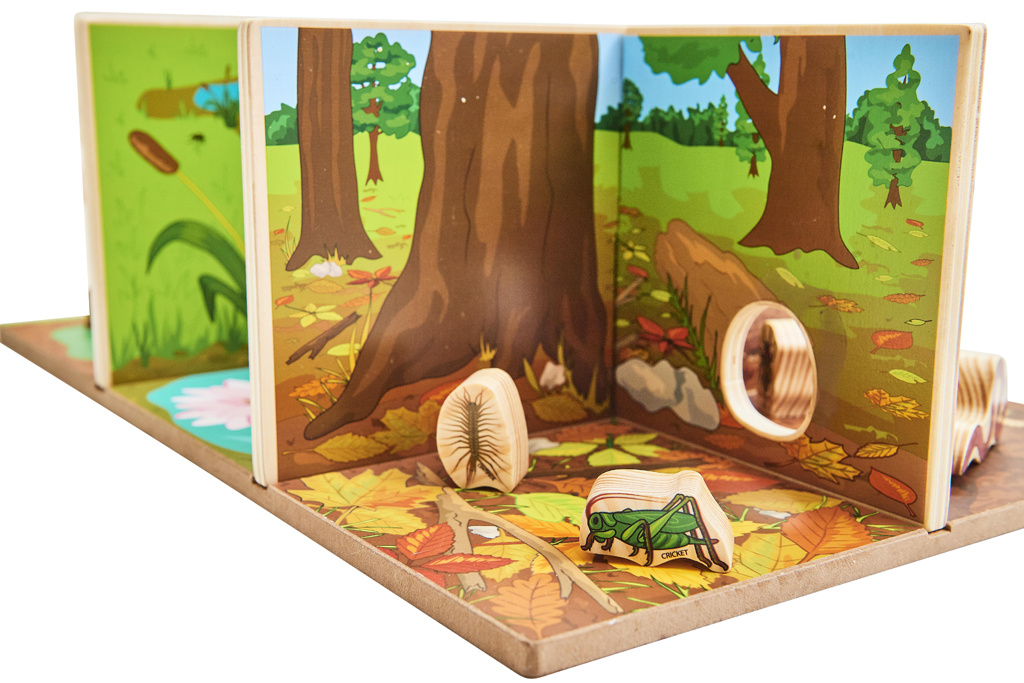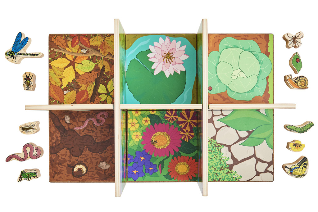 Súprava prináša šesť rôznych, no vzájomne prepojených životných prostredí, v ktorých žije dážďovka, motýľ, stonôžka, lúčny koník, chrobák, húsenica, pavúk, slimák alebo vážka. Deti môžu živočíchy ľubovoľne presúvať a vymýšľať príbehy. Ich pravdivosť si potom overí u svojho učiteľa.