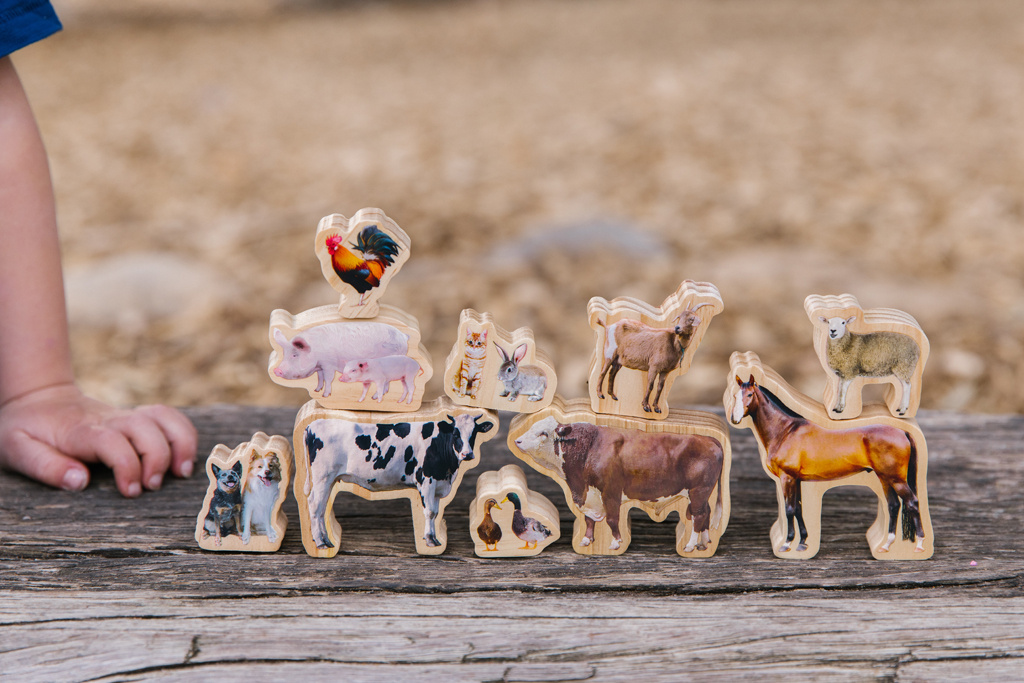 Život na farme ukrýva veľa tajomstiev! Pomocou 10 drevených dielikov s reálnymi obrázkami zvierat môžu deti vymýšľať príbehy, napríklad o nerozlučných psích kamarátoch, koze rohatej, zaľúbených kačičkách alebo pyšnom kohútikovi.