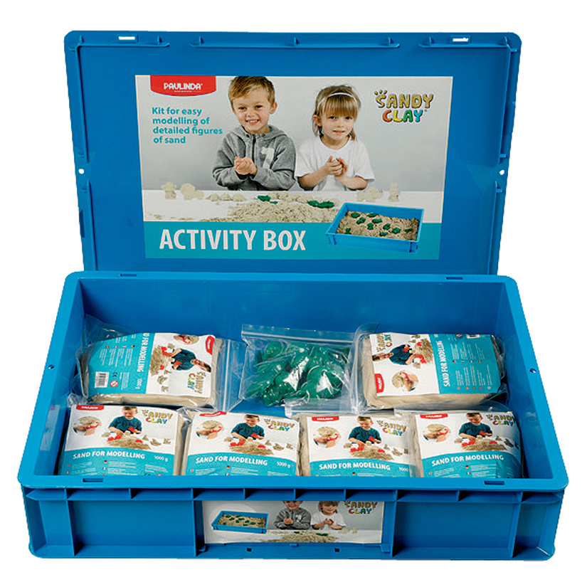 Nechajte deti vstúpiť do fascinujúceho sveta, kde je všetko z piesku! Sandy Clay, obľúbený modelovací piesok, síce vyzerá ako piesok, má však množstvo ďalších výhod – jemnú textúru, ľahko sa modeluje, umožňuje vytvarovať aj najjemnejšie detaily. Navyše nie je sypký a nevysychá. Štartovacia sada obsahuje praktický extra pevný box s vekom, ktorý sa môže použiť aj ako pieskovisko.