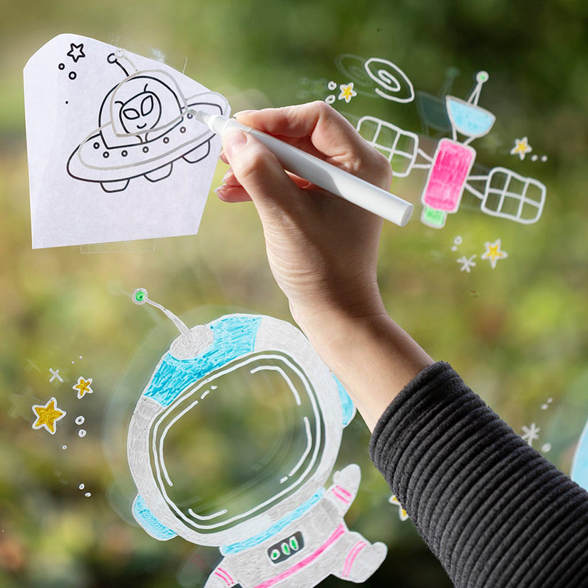 Kriedové popisovače môžete použiť na všetky hladké a nesavé povrchy, ako sú okná, sklo, porcelán, plasty, zrkadlá atď. Kresbu ľahko odstránite vlhkou handričkou.