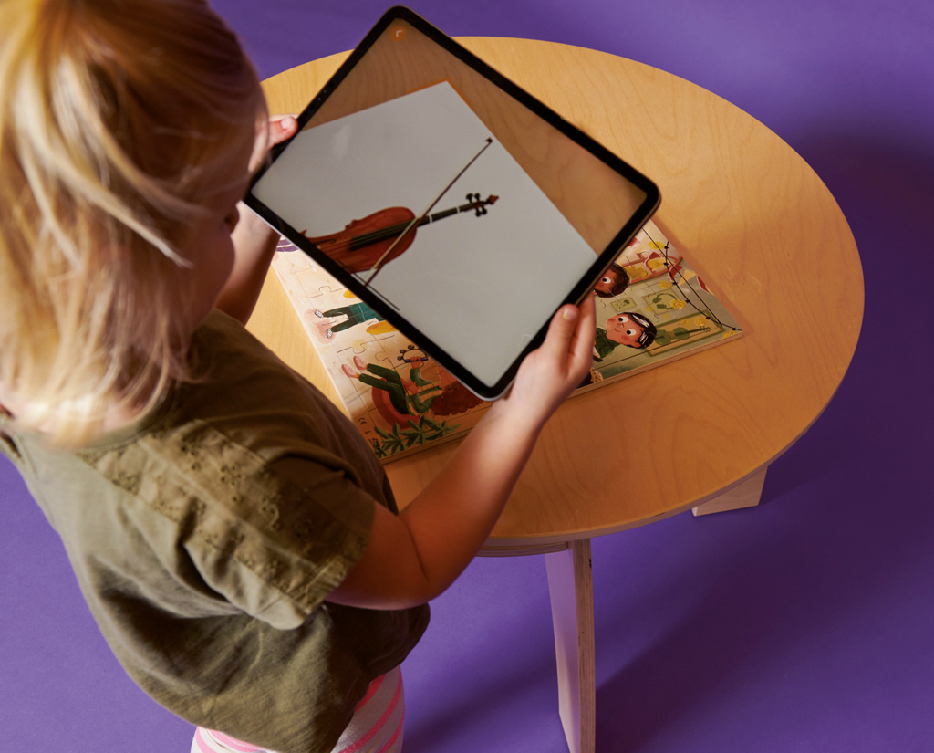 Následne ju pomocou aplikácie "Rolf Sounds" môžu doslova rozohrať. Stačí naskenovať konkrétny hudobný nástroj a na tablete sa zobrazia jeho detailné fotografie a zaznie zvuk, ktorý vydáva. Keď deti naskenujú celé puzzle, zobrazí sa všetkých desať hudobných nástrojov a kapela zahrá krátku skladbu.