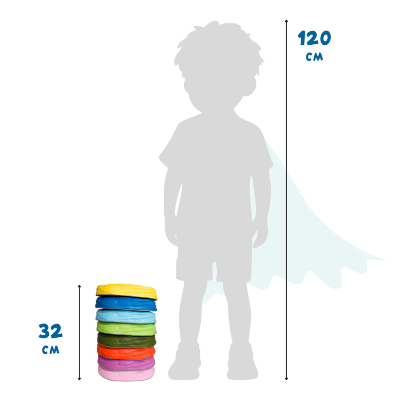 Súprava balančných kameňov z mäkkej peny je určená na nácvik rovnováhy. Kamene majú zo spodnej strany protišmykovú úpravu, môžu sa preto používať na rôznych povrchoch.