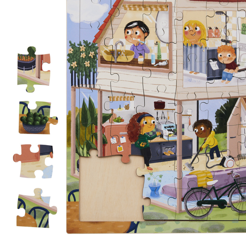 Puzzle s rozšírenou realitou umožňuje deťom rozpoznávať jednotlivé miestnosti v dome aj podľa typických zvukov, napríklad hrmotu práčky, krokov na schodoch či tečúcej vody. Deti zložia obrázky jednotlivých miestností a následne ich naskenujú pomocou aplikácie Rolf Sounds. Obrázok miestnosti sa zobrazí na mobilnom zariadení a súčasne zaznejú zvuky typické pre danú miestnosť.