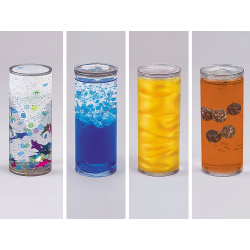 Veľká veda v malom balení! Didaktická pomôcka sa zameriava na objavovanie vlastností kvapalín. Stačí valce otočiť a deti môžu pozorovať, ako ovplyvňujú správanie kvapalín dve fyzikálne vlastnosti – gravitácia a viskozita, ako sa oddeľujú kvapaliny rôznych hustôt, sledovať vytvorené vodné prúdy a pochopiť, čo nadnáša telesá ponorené v kvapaline. Valce sú bezpečne uzavreté, ľahko sa držia a hra s nimi deti zároveň uvoľňuje a pomáha im lepšie sa sústrediť.